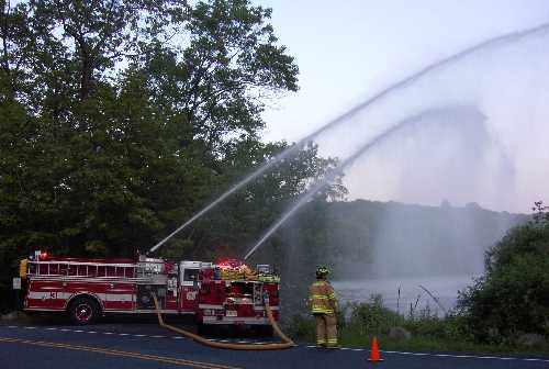 on Lake Kinnelon in Smoke Rise, Engine 3 established draft and relayed water to Satellite 35. ![]() |